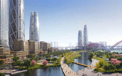 SOM 在济南新中央商务区的设计工作始于 2016 年,从城市规划、建筑设计,再到景观设计,SOM 已在这座著名的“泉城”深耕多年,为城市的发展贡献国际化的实践经验。在济南绸带公园的设计中,我们在逐渐崭露头角的济南中央商务区的核心部分创造了一个世界级的生态公园系统——通过一系列标志性的开放空间与区域内的景观生态建立连接,同时融入济南的自然风光和文化遗产。