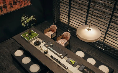 九章赋位于杭州萧山,杭州作为一个南宋古都,在这样一个文化底蕴深厚的环境下,以宋氏园林为设计依托,融入古典园林中那些历史流传的故事,让每一个行走在这个空间里的人都能切身感受到宋朝诗词描绘出的美感。