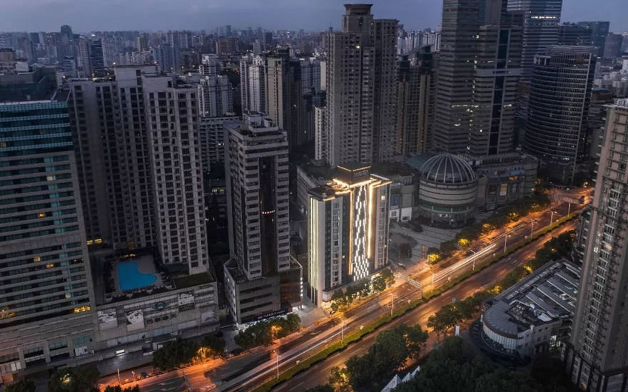本案位于长宁路内环内,紧靠中山公园板块,属于地铁上盖项目。区域商业配套成熟,大型购物中心环绕,有巴黎春天购物、龙之梦购物中心、长宁来福士广场等,日均人流量达到40余万人次。这栋塔楼原身是一座上世纪90年代的传奇建筑,曾拥有区域“第一高楼”的美誉。针对区域规划中所指引的“强化丰富的视觉感受”,为契合整个区域的居住需求和产业文化,在不动原建筑结构的基础上,建筑局部进行改造与焕新。