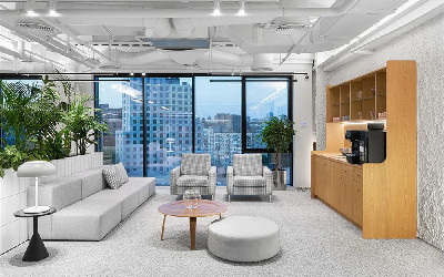 这处办公室与之前的“红蓝渐变”项目同在一幢大楼,办公室之间共用同一个走廊,因此设计采用了类似的风格但更加精致、细腻的手法。本案由5point.space设计团队精彩呈现。