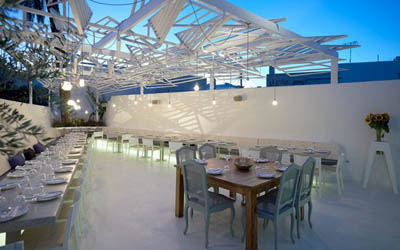 该项目中,建筑师通过对传统元素的塑造提炼,处理就餐区,运用了希腊岛屿的遮阳结构。木制凉棚和其转化成为的雕塑结构表达了设计师的观点:将传统观念纳入现代建筑之中。设计从而呈现出颠覆性的表达方式。