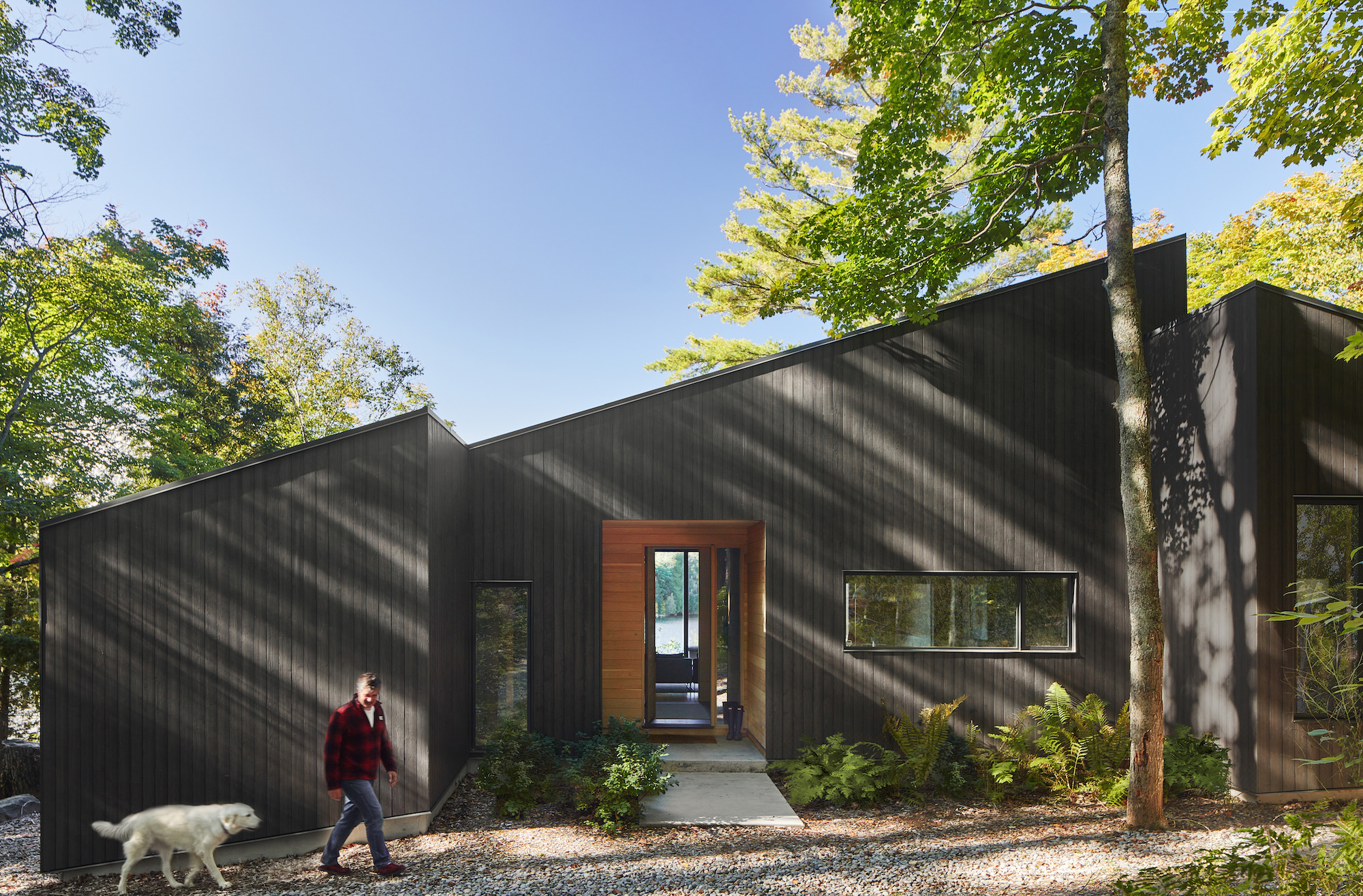 Georgeville Residence 项目位于魁北克东部城镇地区。该项目建在一片大草地上,草地上点缀着成片的成熟树木。这片风景优美的土地向西延伸,可欣赏到宽阔起伏的全景。