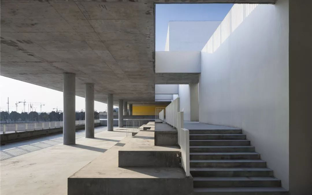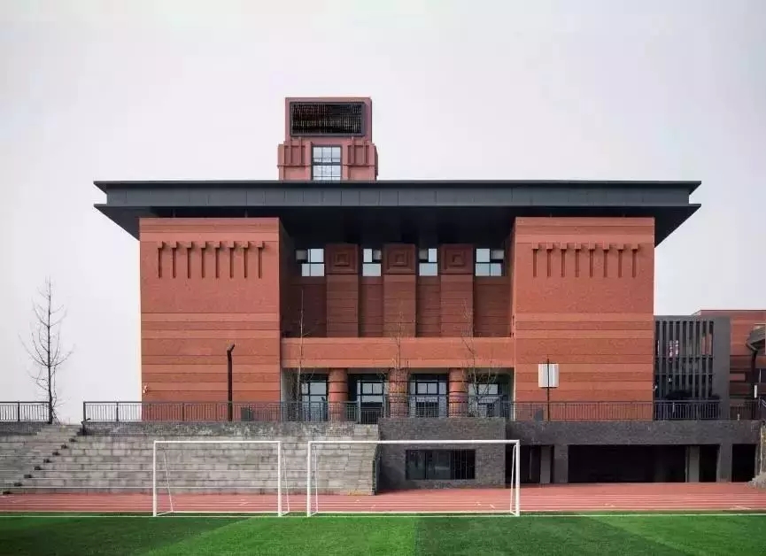 建筑整体设计为教学综合体模式,以此节约用地、保证内部空间的使用效率,并提供最大的户外空间。基于项目两块用地均呈南北进深小、东西向面宽大的特点,小学部将各功能区进行重构、整合,从西至东分为普通教学区、专业教学区、食堂、报告厅、体育馆综合楼以及400米标准运动场六个区域
