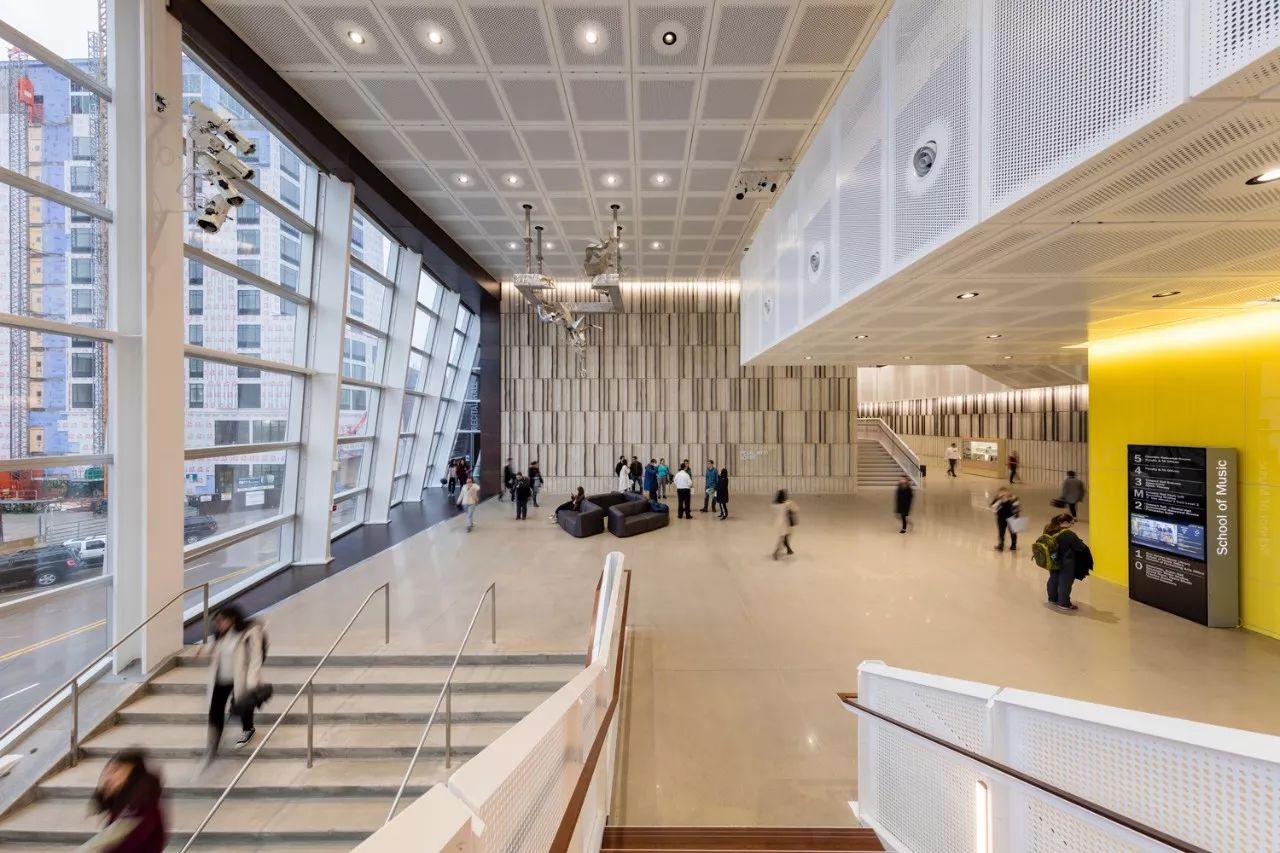 福克斯曼音乐大楼(Voxman Music Building)中每时每刻都有音乐表演,任何一处都可作为表演空间,采用协作和探索式的学生主导型教育模式。