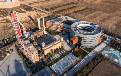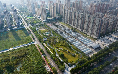邹城铁合金公园项目位于山东省邹城市,前身是山东鲁南铁合金厂,在城市更新迭代的浪潮中,被重新发掘保护。铁合金园区的总体规划保留了典型生产设备,将之融入到现代城市公园景观之中。一条横穿公园的空中栈道纵贯其间,不仅串联工业历史印记,连接“过去”和“未来”,更为游人提供了一条观赏和感受工业遗迹的独特路径。