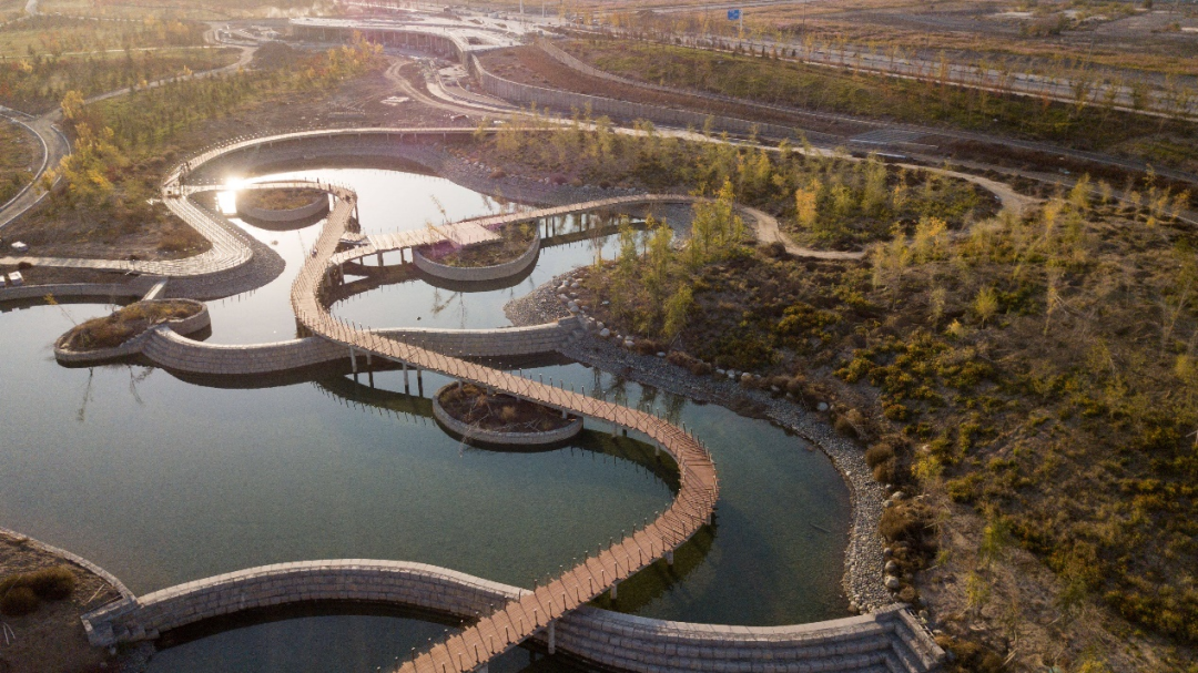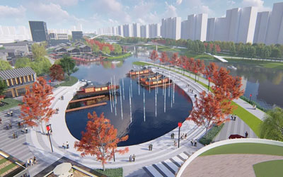 项目位于胶州湾产业新区核心区域,其中跃进河作为蓄洪河道兼具区域核心景观功能,横穿产业新区并连接大海,贯穿四片功能组团。景观规划从宏观角度对沿河两岸景观作总体定义,对各个片区的驳岸效果、建筑形态、风格特色以及绿化、铺装等各个系统作统一分析研究,确定各区域的系统设计、景观节点及景观元素,以此作为下一步各区域景观设计的依据。