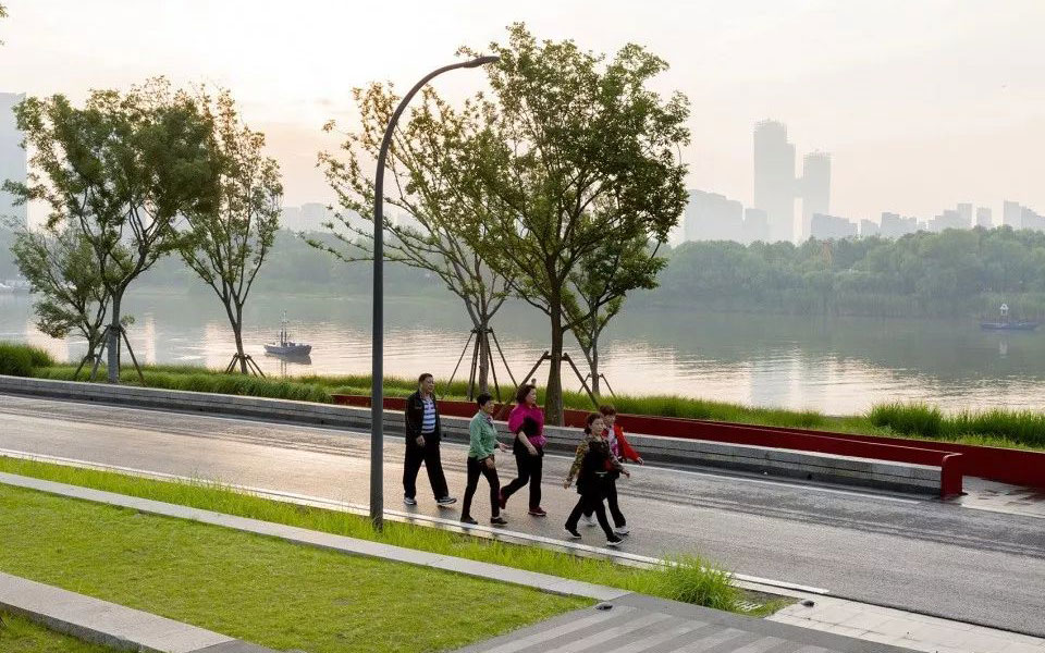 在既有的堤坝基础上,修复生态缺陷,改善沿江风貌,注入新的休闲活动功能,将这片在过去几十年里无人问津的土地发展成了江心洲重要的资源。