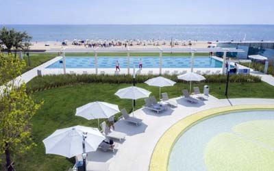 场地位于阿那亚海滩边的ClubMed地中海酒店南侧,随着日渐增多的人流,阿那亚社群氛围满溢,炎炎夏日里,泳池成了海边难得的水上游乐空间,传递着轻松、清凉、阳光的度假体验。