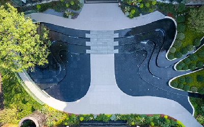 在空间营造上有意将社区内部景观与周边的城市公园整体考虑,形成公园里的住宅风景,营造浑然天成的景观效果。场地边界的相互渗透及融合,将自然绿意扩大延展的同时也给空间注入新的活力。根据当地的城市印象及文化符号,我们将河流元素提炼成设计语言,演绎进场地空间。