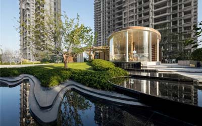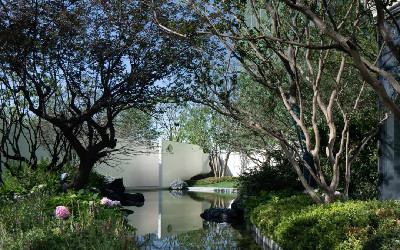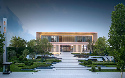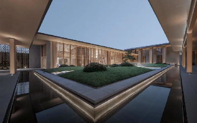 示范区位于项目地块南侧,前期作为“去销售化”铂金会所供销售使用,后期作为供业主使用的艺术会所,寻求一种宁静淡雅的建筑体验。何为静,上善若水是为心之静,去繁就简为物之静。