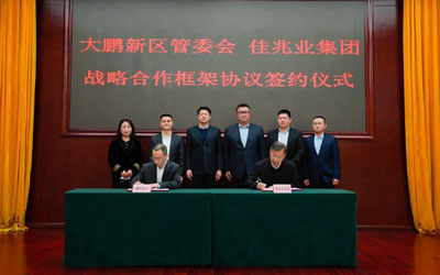 1月20日,深圳大鹏新区管委会与佳兆业集团战略合作框架协议签署仪式在新区管委会正式举行,大鹏新区党工委副书记、管委会主任刘广阳,大鹏新区党工委委员、综合办主任王继良,大鹏新区党工委委员、管委会副主任刘峰,佳兆业集团董事局副主席兼总裁麦帆,佳兆业新事业集团主席张华纲,佳兆业国际乐园集团联席总裁李金等管理层参加活动。