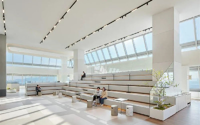 韩亚新总部是NBBJ在新冠疫情爆发之后开始着手设计的项目之一,为此NBBJ侧重打造更有益身心健康的社区环境,在方案中融入了诸多打破常规的新元素。NBBJ认为,日常工作不应让人感觉到身心上的透支耗竭。为此,他们为韩亚总部创造了有助于员工在身体和精神两方面恢复活力的办公场所,将自然元素融合到设计之中,创造出灵活、多元、振奋人心的空间。