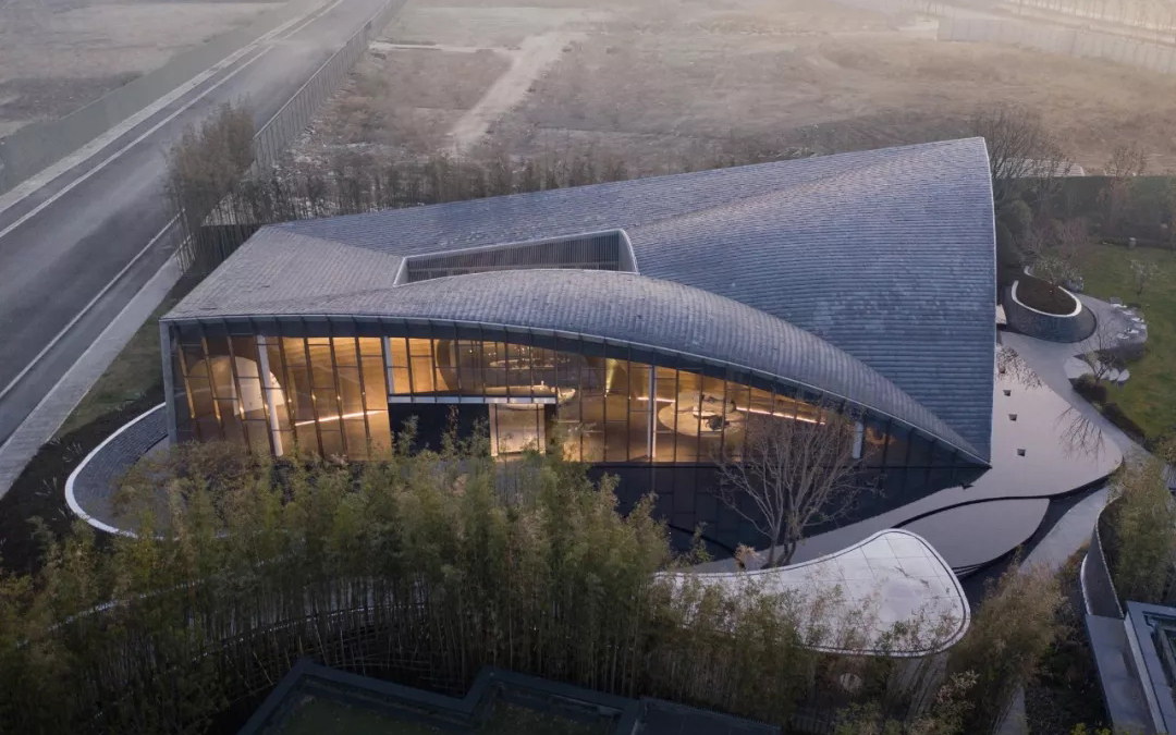 项目原生场地也是如此,自然景观资源优渥,山川河泽环绕,不禁让人联想到天地广阔,山绕水长,基于此条件,设计上模拟山水纹理,落成多重景观场所。