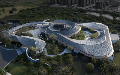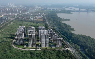 项目位于扬州市广陵区广陵新城核心地带,东邻廖家沟,北侧紧临朱家河景观带,大桥公园绿地环绕。廖家沟作为城市一线资源,是地块外最大的资源亮点。设计之初,我们希望最大化利用景观资源,能够充分体现项目的“滨江性”。