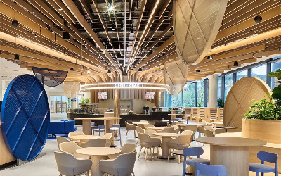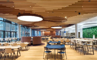 Beiersdorf 集团的工间咖啡厅和校园餐厅表明,一个透明的、网络化的、生动活跃的沟通枢纽可以为灵活的工作方式增添色彩。作为总部的核心设施,这一全新的入口设计不仅对公司内部产生巨大的辐射力,而且还向外界展现出 Beiersdorf 的价值观和文化。