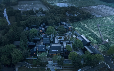 濮院,明清时期江南五大名镇之一,曾以“日出万匹绸”被誉为“嘉禾第一巨镇”, 项目便位于距离濮院古镇约20分钟车程的星旗村。场地东侧紧邻村道及大片荷塘,南侧为开阔的稻田,步入场地内不禁被其间参天的水杉及郁郁葱葱的香樟林所震撼,几幢年久空置的民宅掩映在这密林间仿若遗世独立,呈现出与外部乡村日常景观截然不同的气质。业主希望在这里设计一座秘境般的疗愈度假酒店,以及一处为村民服务的邻里中心。