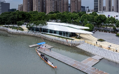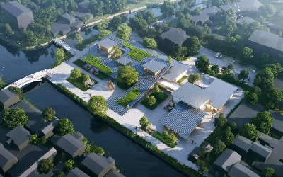 本项目位于嘉兴平湖市新埭镇,新埭镇是一座拥有460年历史的江南水乡古镇,场地位于古镇的中心,三里塘和南北栅塘两条河流的交汇处,河对面是一条历史老街,坐落着俞创硕故居、后新街徐宅等诸多文保建筑。依据上位规划,古镇核心区将进行整体旅游开发,新埭社区党群服务中心作为片区开发的先行区,希望既能服务于当地居民,又可以承担未来游客中心的功能,是当地更新改造、产业升级的一个锚点。