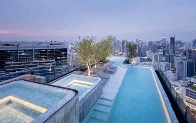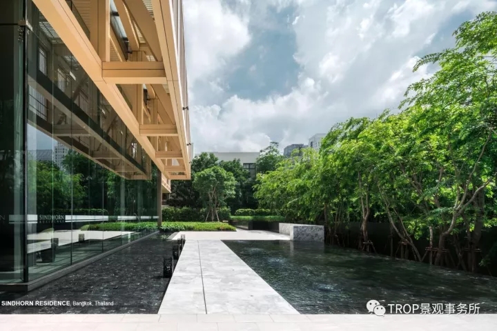 Sindhorn Residence是位于曼谷核心腹地区的住宅项目。虽然地处绿化茂密的荷兰大使馆对面,场地本身却很有限,只有A B两栋塔楼,再加上消防上的限制,项目团队需要良好地利用剩余不多的空间营造绿化效果