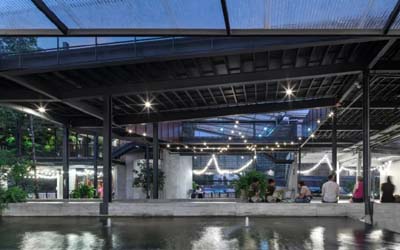 泰国地产开发商Golden Land计划在朱拉隆功大学(Chulalongkorn University)旁建造一处新的商业购物中心Samyan Mitrtown。为了回馈社会,在购物中心的二楼开设了一个名为Samyan Co-op的非盈利教育机构,为当地社区提供一个容纳500人的阅读和工作空间,每天24小时免费向公众开放。本案交由当地的建筑公司onion设计团队打造。