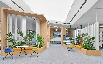 由Gensler 操刀设计的某生物科技公司中国总部新办公室,巧妙融合了灵活办公、多元包容、可持续发展等前沿设计理念,构建出一个活力四溢、开放协作的现代化办公空间。这一空间不仅持续为业务创新注入动力,更凭借其前瞻性布局,充分适应了公司业务扩张与员工数量增长的需求。