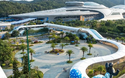 珠海长隆飞船乐园是全球最大的室内游乐场,位置与长隆海洋王国毗邻。飞船乐园整体形状似一条飞船,内部多层结构分布有众多的游乐项目,是亲子游玩的休闲圣地。飞船乐园外围景观遵循“自然”“生态”“环保”“保育”理念,营造自然生态场景,展示海洋生态景观,融入环保与保育理念,让科技与趣味互动结合。