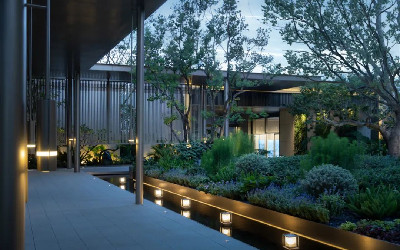 在落日余晖中推开那扇迎宾之门,加那利海枣的枝叶轻抚过岁月的纹理,镜面水景倒映着层云的痕迹,仿佛一场无声的自然雅颂。这里不是远方的度假村,而是一处为心灵设计的栖所——家的边界被重新定义,成为寄托精神的“第二居所”。