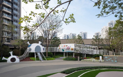 在自然基底之上利用起伏的地形构筑天然冒险场,融入流水元素,配合互动装置,让孩子们打开感官在自然中探索与创造。我们还释放了传统的集中活动空间,在常规意义的活动社交场所之上叠加亲子互动的弹性空间,打造新自然主义的儿童友好型社区。