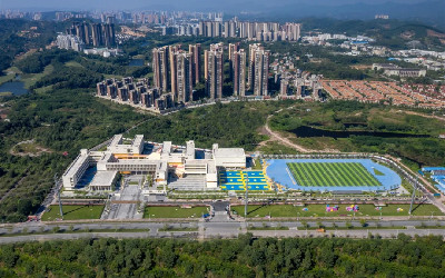 项目位于惠州市惠城区,虽然项目用地较狭长,但63391.45㎡的用地面积和平坦的地势,还是让习惯了市中心里高容、高密校园模式的我们眼前一亮,偌大的场地令人心情舒展,思绪也开始蔓延开来。