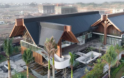 本项目位于海南省海口市,作为该地块的展示中心及售楼中心,本案引领了整个地块的精神面貌。业主希望建筑兼顾功能与审美的需求,风格上体现当地建筑特色的同时,不失现代流行气质。