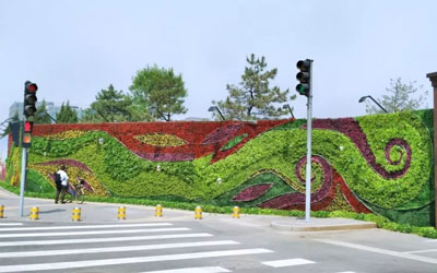 景观墙建成之后,提升了道路绿化的主题氛围,与“一带一路”论坛所倡导的开放、绿色理念相呼应。