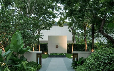 在落日余晖中推开那扇迎宾之门,加那利海枣的枝叶轻抚过岁月的纹理,镜面水景倒映着层云的痕迹,仿佛一场无声的自然雅颂。这里不是远方的度假村,而是一处为心灵设计的栖所——家的边界被重新定义,成为寄托精神的“第二居所”。