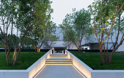 本案从诞生之初就赋予它“城市展厅”与“艺术中心”的双重内涵。景观结合项目区位并充分尊重场地现状高差的特点,提出将自然环境、场地记忆以及城市形象有机结合起来。创造出一个既可以代表城市未来形象又不失艺术感的“双基因”公共展厅,在未来感与艺术性之间有机地游走。