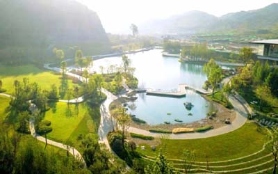 感知自然与现代栖居生活一直是人们的追求,整个场地以湖山为本,希望营造出林影与艺术融合的现代美学,诠释心宁境语的景观空间,希望能够连接并激活公园用地,并以此为舞台展示YANGO记忆环产品逻辑。