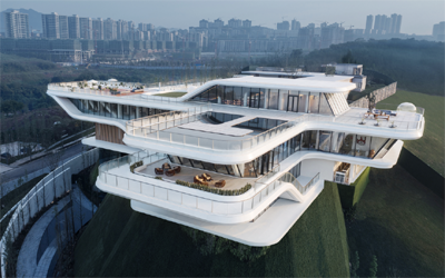 在小山树林环抱的上海松江区,阳光城集团与中科院携手打造了一座以智能技术和脑科学创新为核心的“智能中心”——G60脑智科创基地。这座基地以吸引上述领域的高科技企业为目标,并因此委托IFG为其设计售楼中心。在本次设计中,我们旨在搭建一座联系人与自然和科技之间的桥梁,用有机的形态传达体验,令访客亲身领会该基地的精神和愿景,并且在接纳的同时,将自己融入主体,直接参与到构建的过程中来。