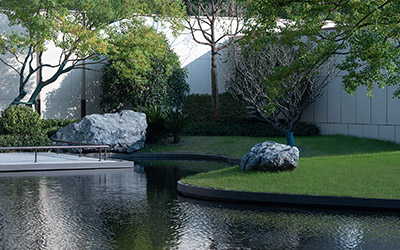 设计以一种东方含蓄隐晦的美学,让我们的身体、心灵都可以摒弃繁杂,真正的去注视、欣赏、发现,那些隐藏在表象之外的美。虚与实、远与近、空与满、平面与立体,在设计师的笔下形成结构性的对比,予人极简空灵的空间体验。