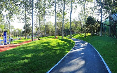 项目位于北京大兴区庞各庄的一块社区代征绿地,其原址为高尔夫球场的外围防护绿地,场地内成行种植的速生白杨和刺槐等乔木,十分有利于此地社区公园的建设。