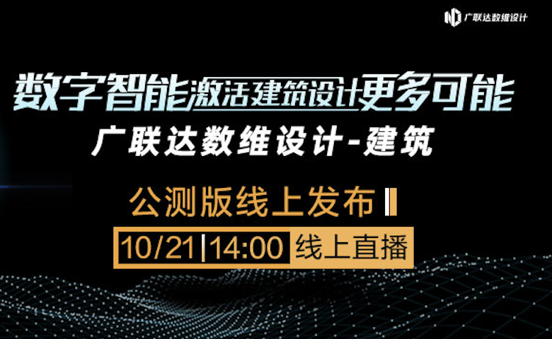 10月21日14:00,广联达数维设计---建筑产品公测版将以线上发布的方式与所有的设计行业同仁见面,这款历时数年筹备开发,专为国人打造的的建筑设计软件,想为所有设计同仁定义或重新定义“好用”二字!