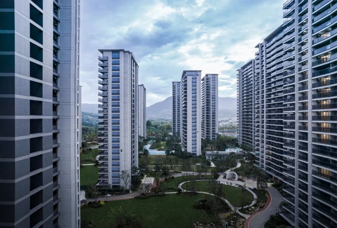 绿城氡泉小镇高层住宅区西北高东南低,存在约30米的高差。